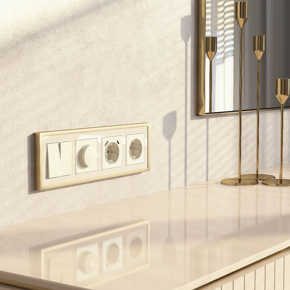 Рамка акриловая Werkel Baguette на 4 поста Айвори / Латунь W0042851