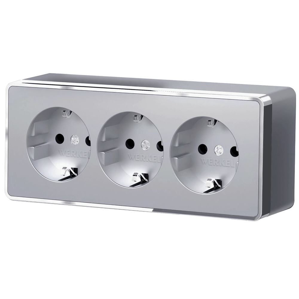 Розетка накладная тройная Werkel Gallant с заземлением и шторками Серебряный W5073106