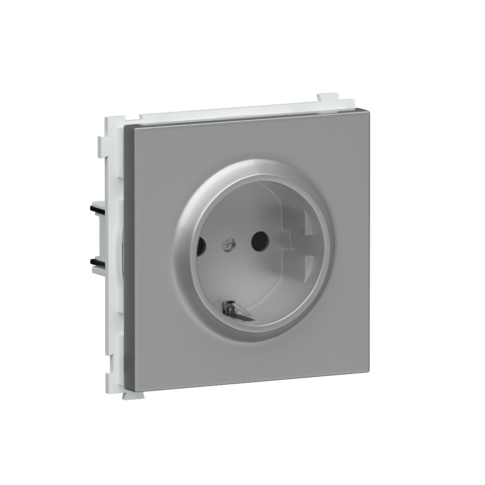 Розетка встраиваемая Donel R98 Schuko с заземлением и шторками на винтах Алюминий матовый DA18800-DA22026