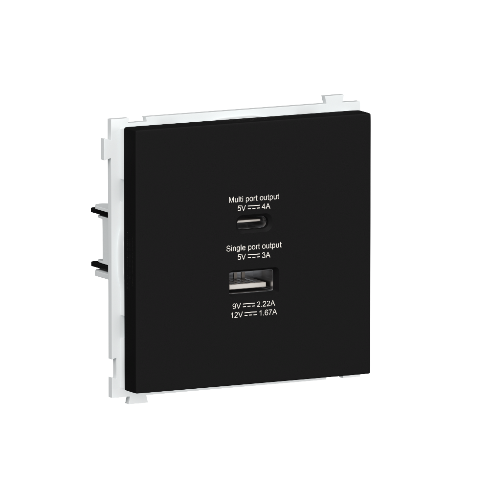 Розетка встраиваемая USB Donel R98 тип A+С быстрая зарядка Карбон матовый DA20400-DA27730