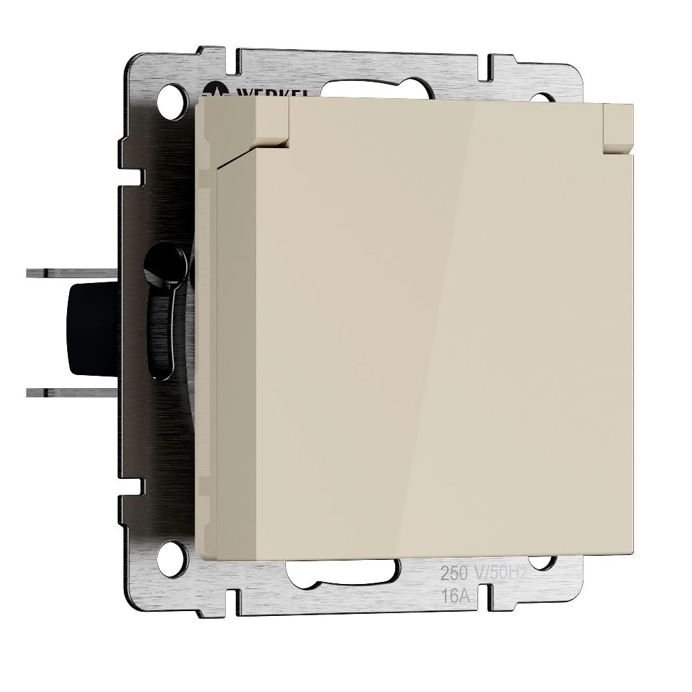 Розетка встраиваемая влагозащищенная Werkel с заземлением, шторками и защитной крышкой Слоновая кость W1171203