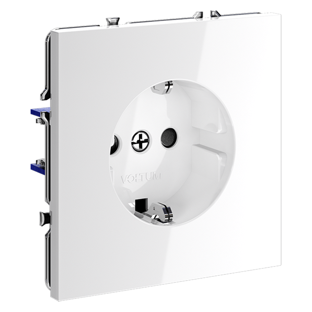 Розетка встраиваемая Voltum S70 с заземлением и шторками Белый Глянцевый VLS040201