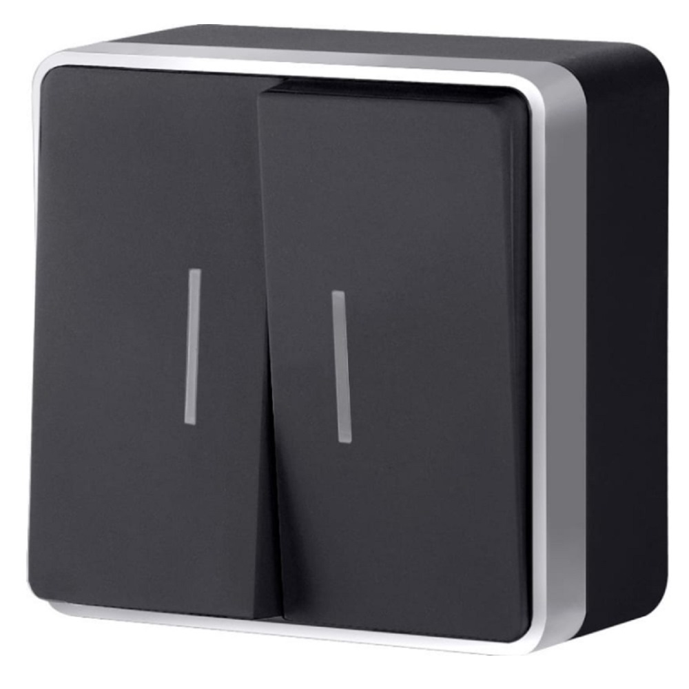Выключатель двухклавишный накладной Werkel с подсветкой Черный с серебром W5020134
