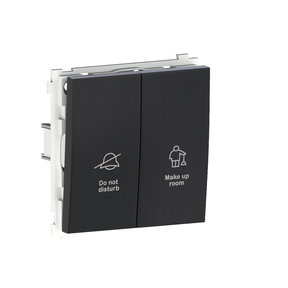 Выключатель двухклавишный встраиваемый Donel R98 Metal с символами DND/MUR Вороненая сталь DA25800-DA888GS