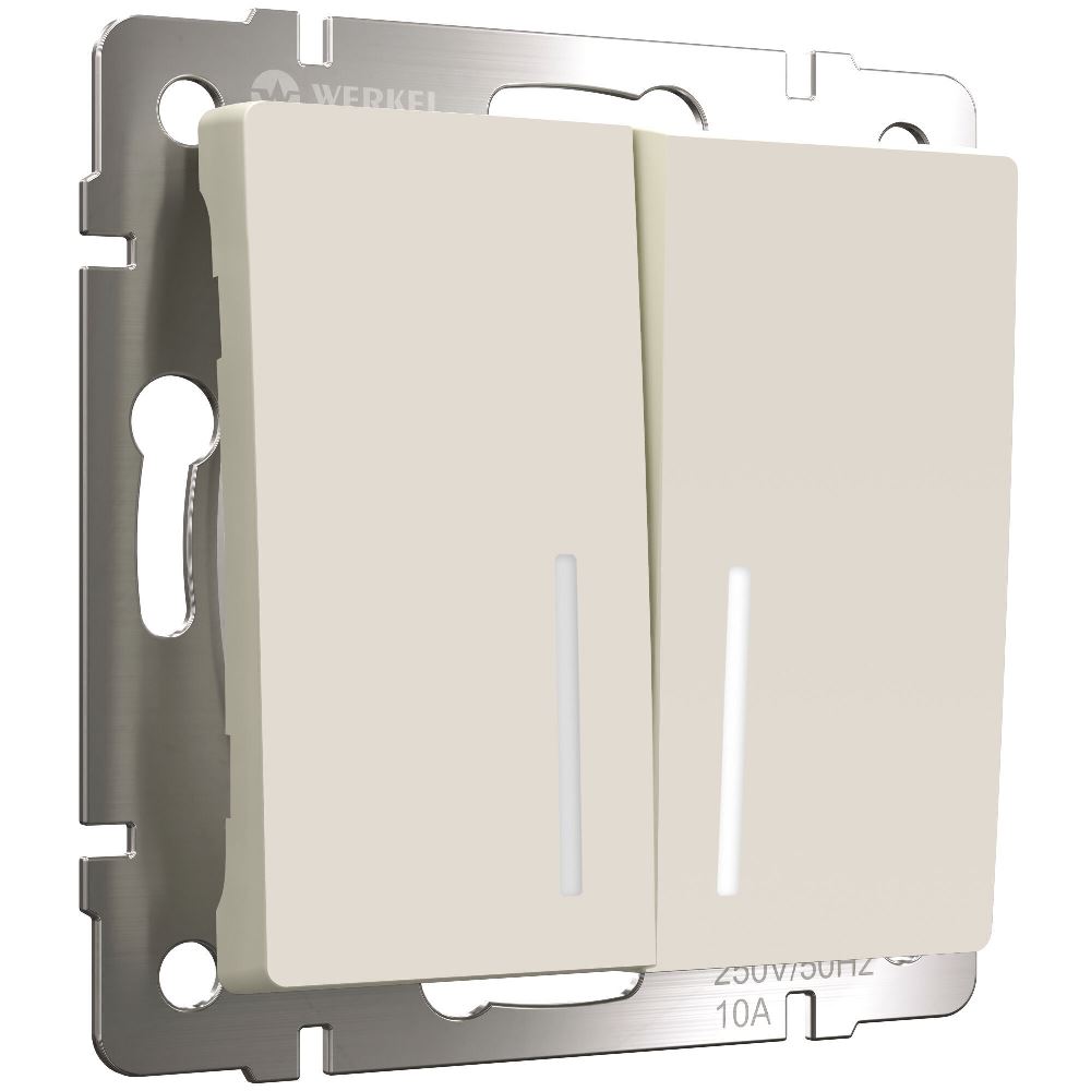 Выключатель двухклавишный встраиваемый проходной Werkel с подсветкой Айвори матовый W1122162