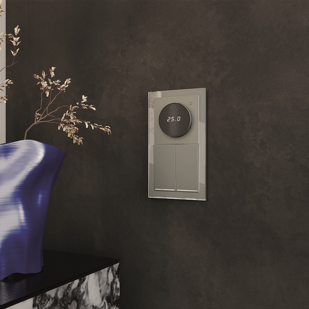 Выключатель двухклавишный встраиваемый Voltum S70 с подсветкой Титан VLS020206